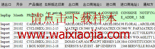 北美进出口统计数据共32个字段(32列,EXCEL格式),含进出口、10位海关编码、产品描述、月份、数量、金额、关别、国别等信息。
