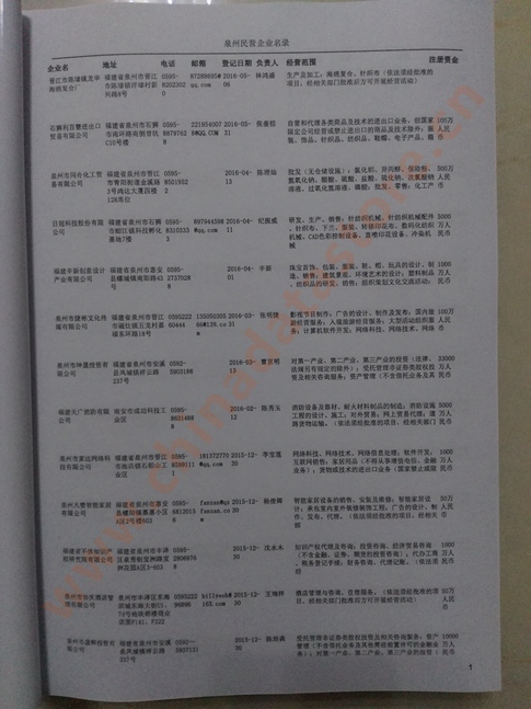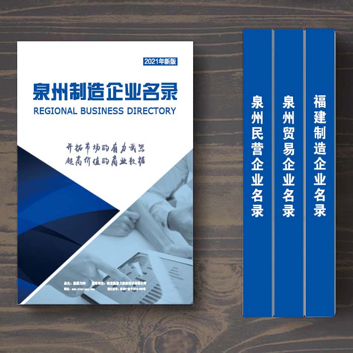 2021版最新泉州企业黄页包括《泉州制造企业黄页》、《泉州贸易企业黄页》、《泉州民营企业黄页》、《泉州外资企业黄页》、《泉州外贸企业黄页》共五册,现优惠价:280元/册。每册内容包括:单位名称、地址、邮编、电话、传真、邮箱、经营范围等;泉州企业黄页涵盖了近几年来最新成立的、有一定规模的企业,具有非常高的营销价值。有了这套黄页开展业务也有了针对性,也省去了盲目去寻找客户名单而浪费的时间了,工作效率也会有很大的提高。欢迎需要泉州企业黄页的朋友及时联系我们!