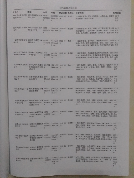 2021版最新绍兴企业黄页包括《绍兴制造企业黄页》、《绍兴贸易企业黄页》、《绍兴民营企业黄页》、《绍兴外资企业黄页》、《绍兴外贸企业黄页》共五册,现优惠价:280元/册。每册内容包括:单位名称、地址、邮编、电话、传真、邮箱、经营范围等;绍兴企业黄页涵盖了近几年来最新成立的、有一定规模的企业,具有非常高的营销价值。有了这套黄页开展业务也有了针对性,也省去了盲目去寻找客户名单而浪费的时间了,工作效率也会有很大的提高。欢迎需要绍兴企业黄页的朋友及时联系我们!
