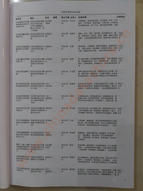 2021版最新石家庄企业黄页包括《石家庄制造企业黄页》、《石家庄民营企业黄页》,现优惠价:280元/册。每册内容包括:单位名称、地址、邮编、电话、传真、邮箱、经营范围等;石家庄企业黄页涵盖了近几年来最新成立的、有一定规模的企业,具有非常高的营销价值。有了这套黄页开展业务也有了针对性,也省去了盲目去寻找客户名单而浪费的时间了,工作效率也会有很大的提高。欢迎需要石家庄企业黄页的朋友及时联系我们!