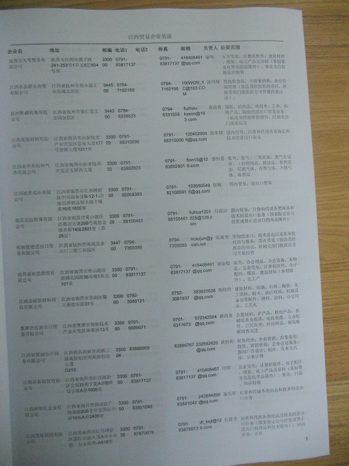 2021版最新江西企业黄页包括《江西制造企业黄页》、《江西贸易企业黄页》、《江西民营企业黄页》共三册,优惠价:280元/册。每册内容包括:单位名称、地址、邮编、电话、传真、邮箱、经营范围等;江西企业黄页涵盖了近几年来最新成立的、有一定规模的企业,具有非常高的营销价值。有了这套黄页开展业务也有了针对性,也省去了盲目去寻找客户名单而浪费的时间了,工作效率也会有很大的提高。欢迎需要江西企业黄页的朋友及时联系我们!