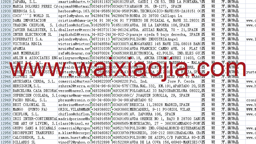 西班牙采购商黄页包括:企业名称、电子邮箱、联系电话、传真、联系地址、联系人、邮编等信息。